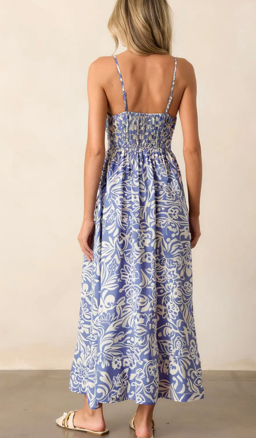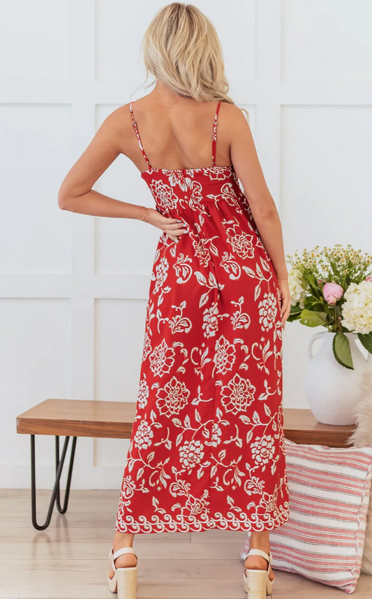 Red Abstract Print Knotted Shoulder High Waist Maxi Dress