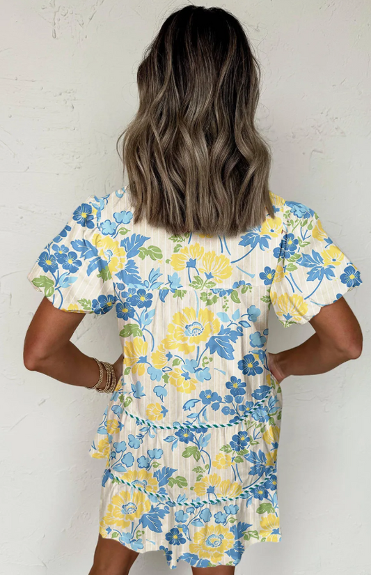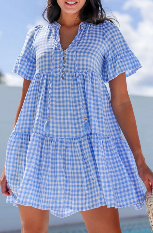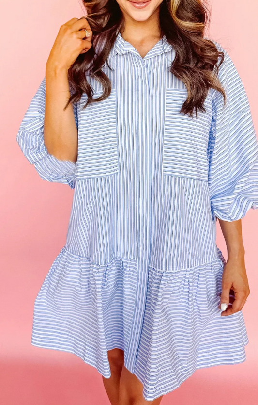 Stripe Bubble Sleeve Chest Pockets Buttoned Shirt Dress