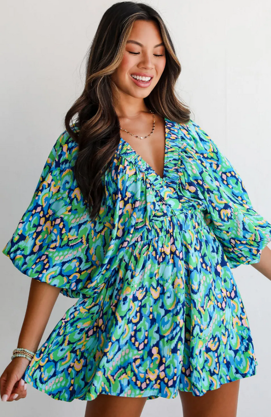 Green Abstract Waist Romper